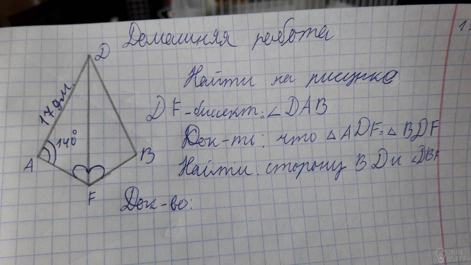 Т.к. треугольники равны, то стороны с углы у них соответственно равны => BD=AD, угол DBF=DAF