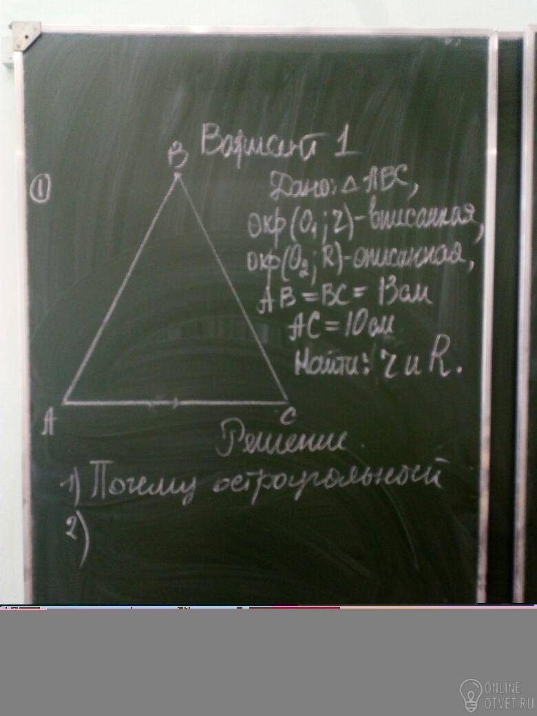 1) В равнобедренном треугольнике центр описанной окружности лежит на высоте, опущенной на основание так как высота и биссектриса вершины равнобедренного треугольника совпадают.