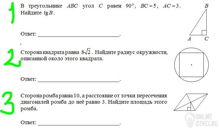 3) S = a*h (S - площади ромба, а - сторона, h - высота)