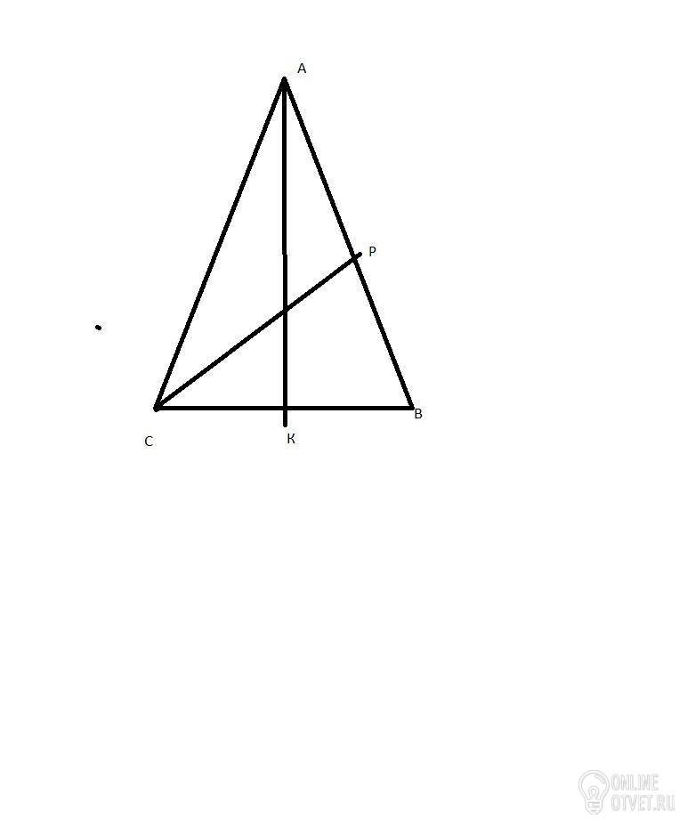 Пусть дан треугольник АВС , СР- высота, проведенная к боковой стороне, АК-высота, проведенная к основанию.