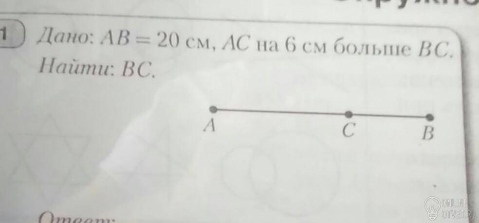Пусть BC = x см. Тогда AC = (x + 6) см. Т.к. AC + CB = AB, то получим уравнение: