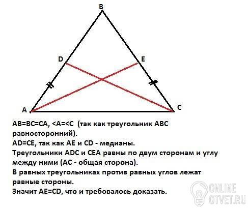 Доведіть , що в рівносторонньому трикутнику будь які дві медіани рівні. Будь ласка з малюнком .