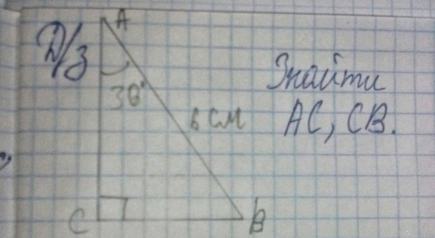 Против угла в 30 град лежит сторона, равная половине гипотенузы, значит, СВ=6:2=3 см