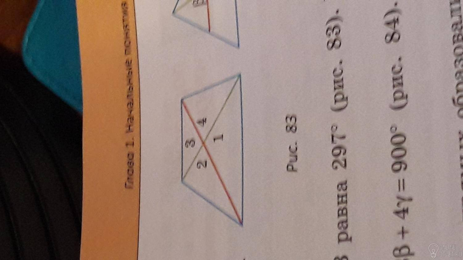 Угол 1+2+3=297. угол 2 = угол 4. угол 1 = угол 3 (как пары вертикальных углов. Угол 1 и Угол 3 обозначим буквой Х. подставляем в дано: Х+2+Х=297