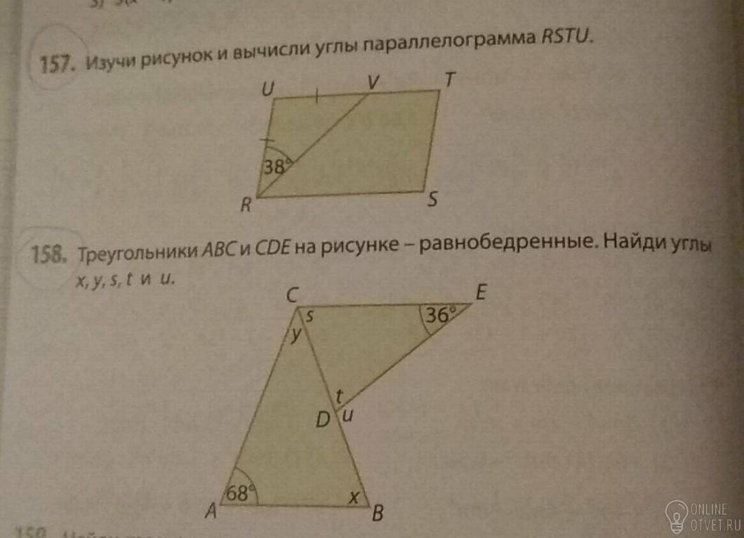 Ответ: x=68° y=44° s=72° t=72° u=180°
