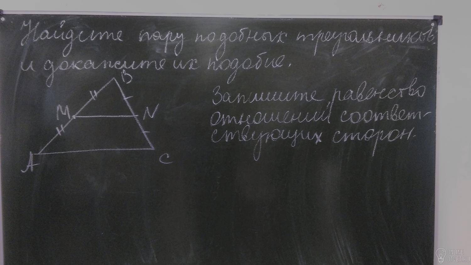 угол B -общий ⇒ΔABC подобен ΔMBN(по 2-м углам) => MB/AB=BN/BC=MN/AC