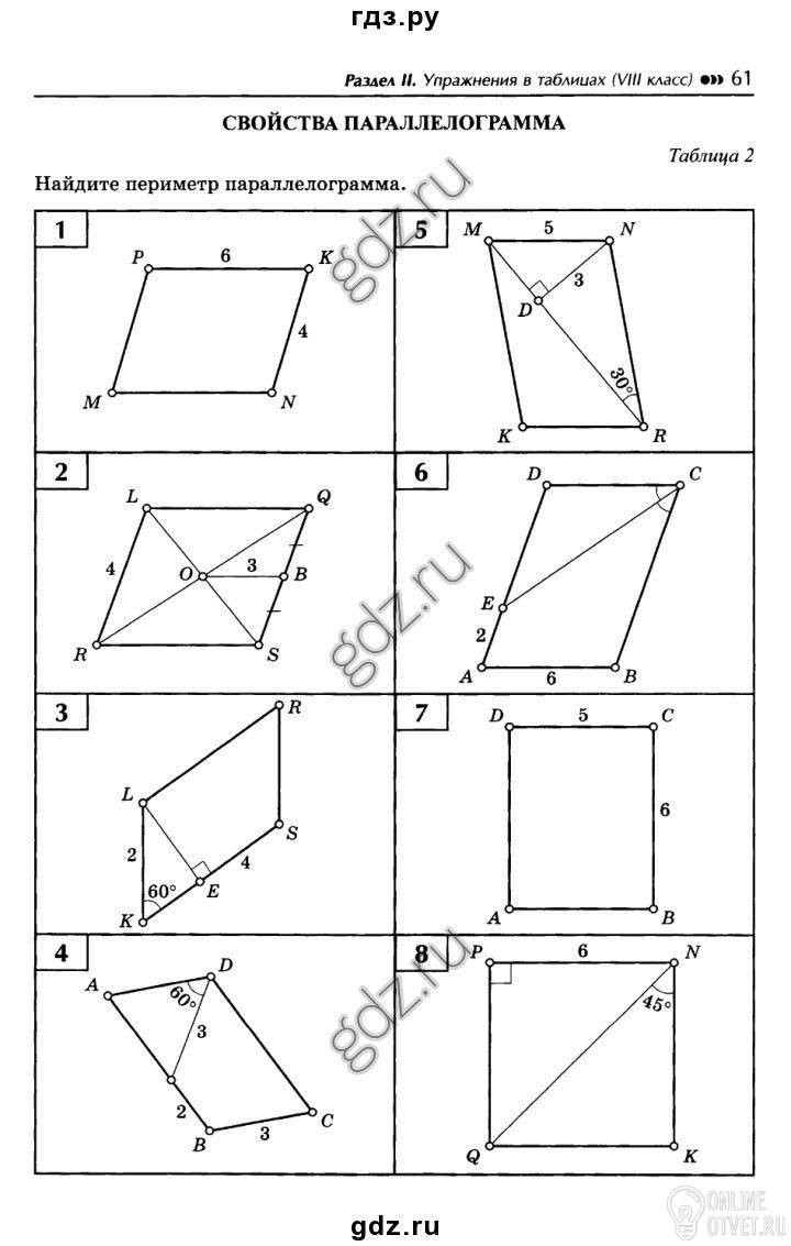Ну, начнём с того, что картинка 8 - не параллелограмм, ну да ладно. QN - биссектриса, а значит все углы по 90градусов. Т.к. угол NQK и QNK равны, следовательно треугольник QNK равносторонний, знаит фигура - квадрат. периметр квадрата = сумма длин всех сторон = 6+6+6+6=24