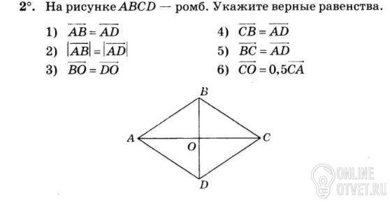 6) диагонали ромба пересекаются и точкой пересечения делятся пополам, значит АО= ОС, следовательно СО=0,5 СА. Векторы СО и СА сонаправленные.