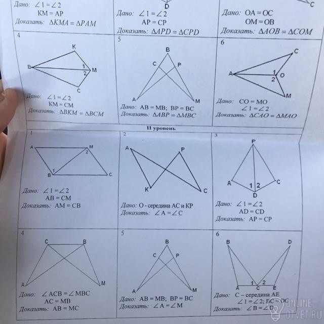 Пусть углы А и М не равны. Тогда: АС не равно РМ, что НЕВЕРНО, т .к. по условию АВравноМВ и ВРравноВС, значит если из АВ и ВР вычесть МВ и ВС соответственно, то АМ не будет равно РМ.