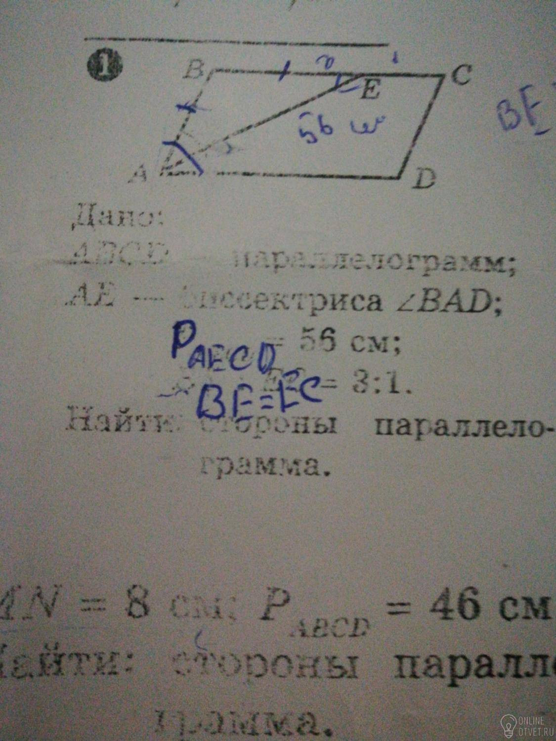 Биссектриса параллелограмма отсекает равнобедренный треугольник Т.о. AB=BE