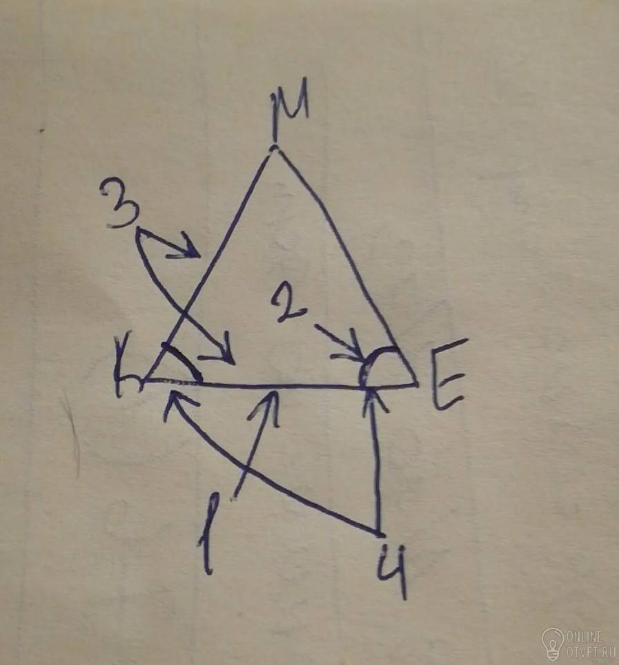 Начертите произвольный треугольник, обазначьте его вершины буквами M,K и E. Укажите 1)сторону, противолежащую углу M 2) угол,противолежащий стороне MK 3)стороны,прилежащие к углу K 4)углы,прилежащие к стороне KE