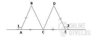 фигурная скопка следовательно триугольник АВС = триугольнику СДЕ