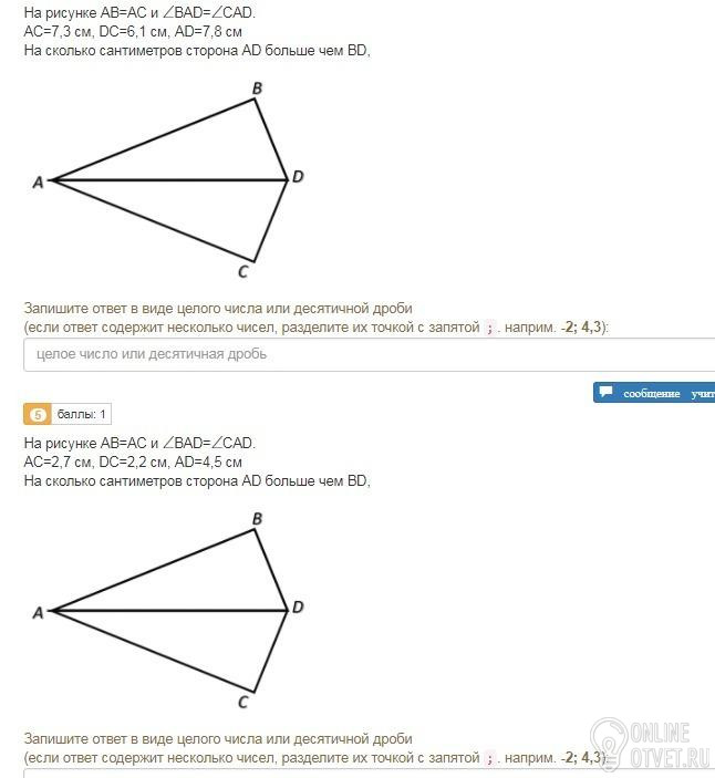 АD - ВD = 7,8 - 6,1 = 1,7 см