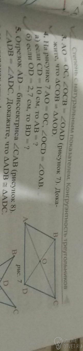 Так как ABCD это прямоугольник, а по определению прямоугольника следует, что противолежащии стороны равны и параллельны. Из это следует, что BC=AD, OC=OA-по условию, угол C = угол D. Треугольники равны.