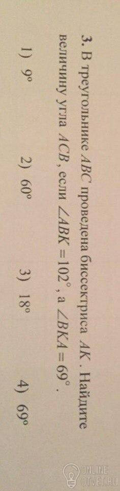 1)180-102-69=9 - угол KAB, так как сумма углов треугольника = 180