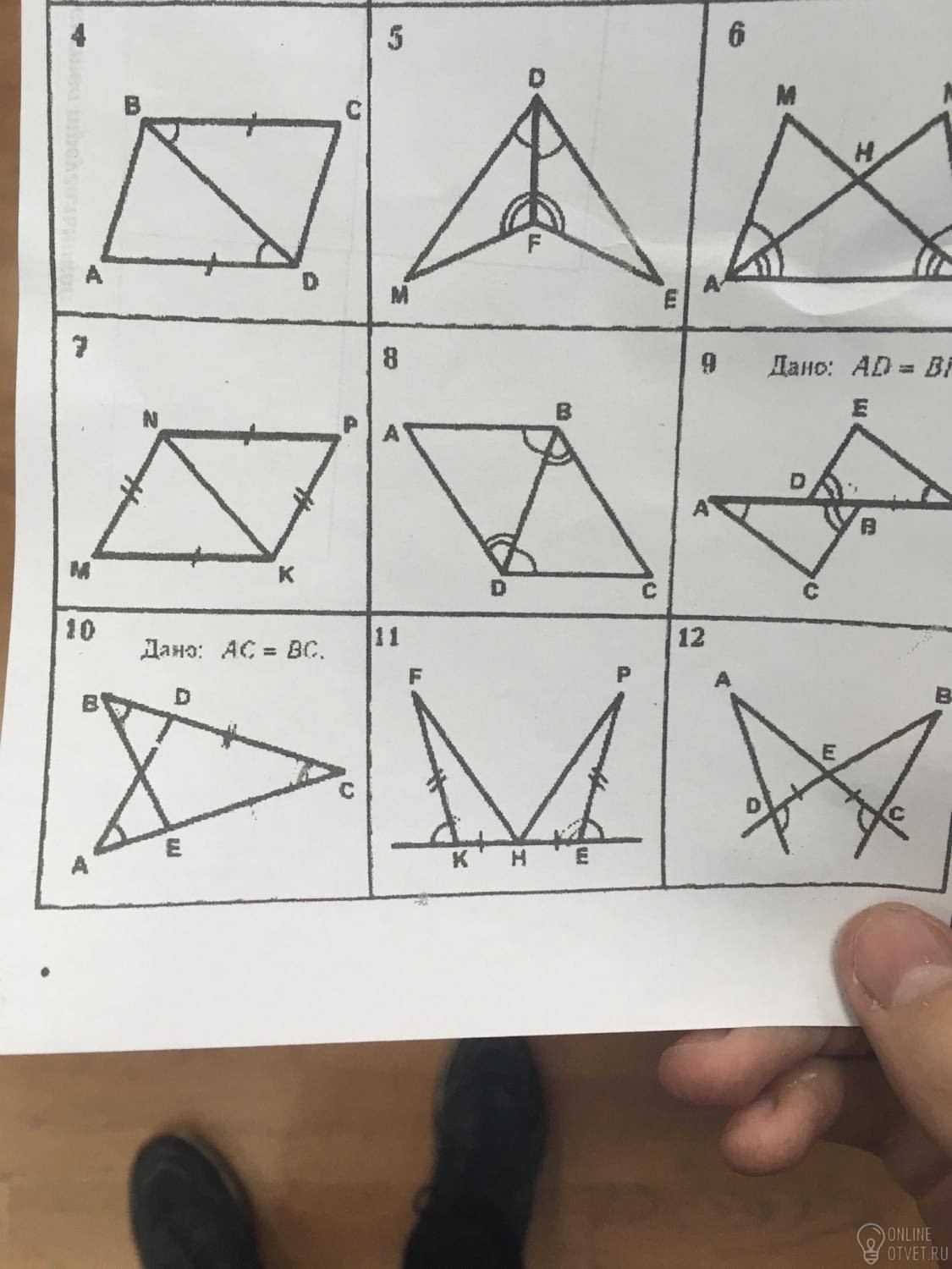 12) DE=CE, угол AED= углу BEC(т.к. вертикальные углы равны), угол ADE= углу BCE(т.к. смежные углы равны)