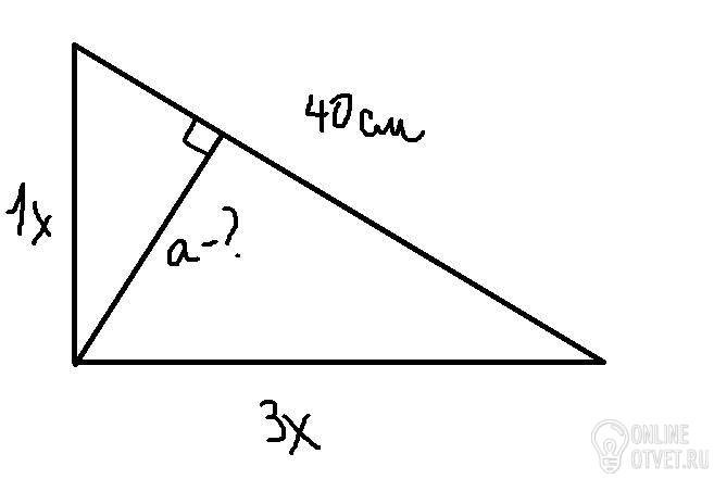 Катеты прямоугольного треугольника относятся как 1:3. Найти высоту, опущенную из вершины прямого угла, если гипотенуза 40 см.