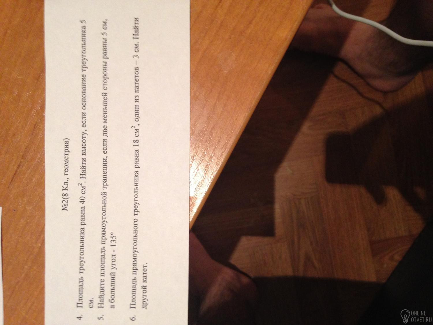 5. большая основа равна 10(треугольник прямоугольный, все углы по 45)