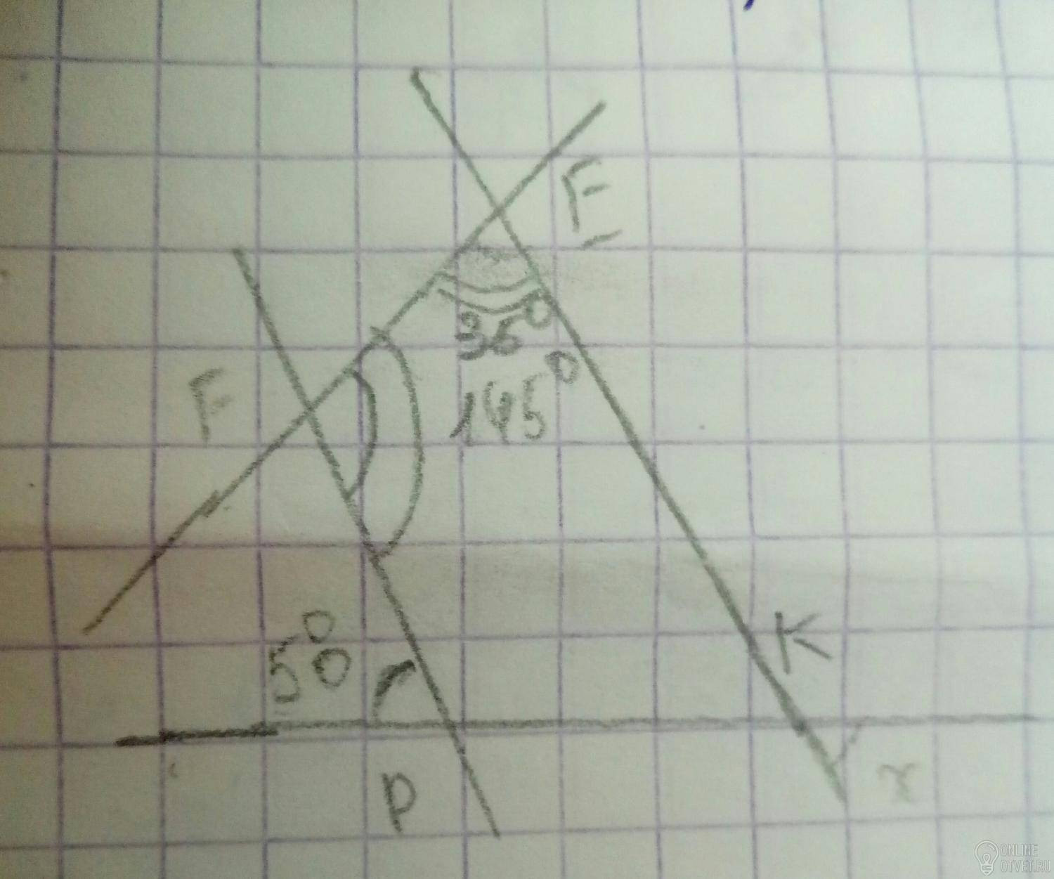 А этот угол который мы только что нашли относительный углу х. А если прямые углы параллельные, то относительные углы ровны. значит угол х равен 50 градусам.