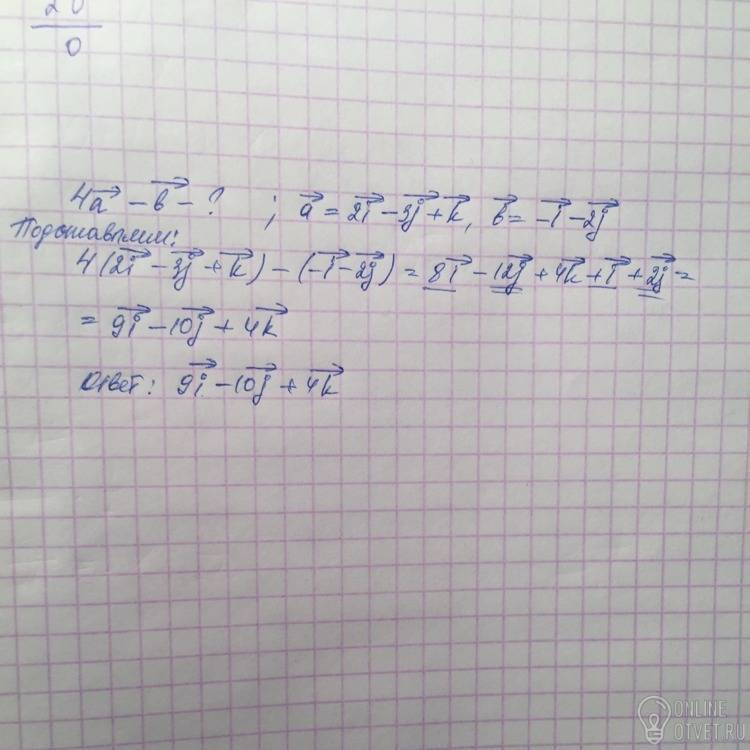 Найти 4а ⃗-в ⃗,если a ⃗=2i ⃗-3j ⃗+k ⃗ и b ⃗=-i ⃗-2J ⃗+6k ⃗.