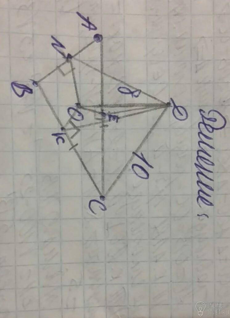 Расстояние до сторон найдем по пифагору из треугольника DON