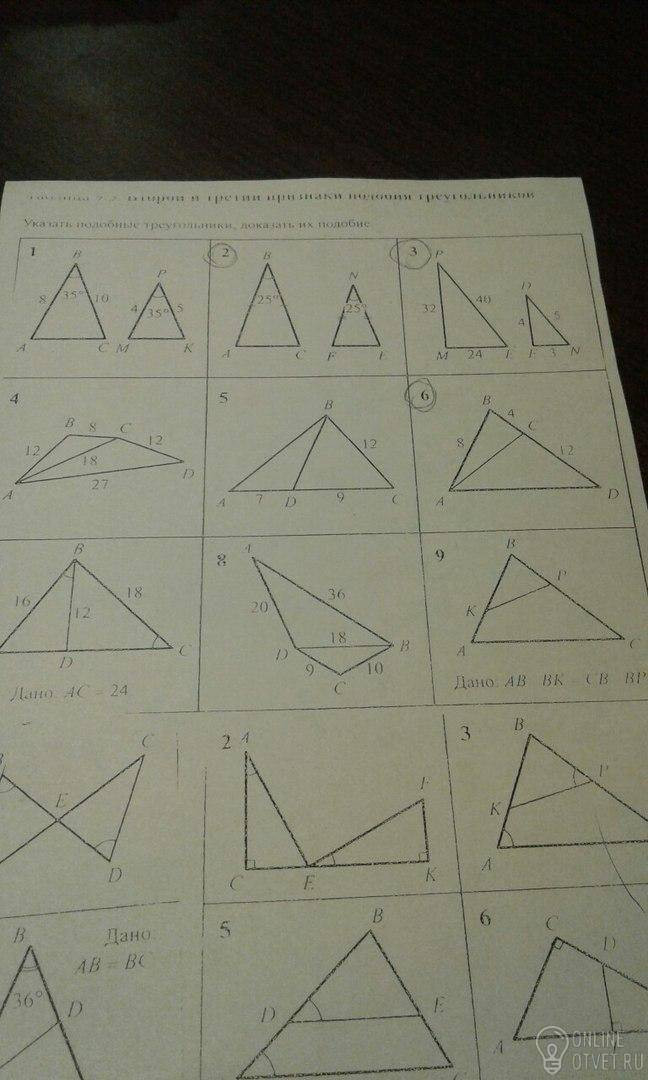 3)по 3 признаку, т.к.стороны пропорциональны.
