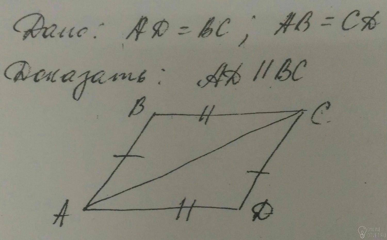 По определению параллелограмма, противоположные стороны параллельны, значит AD || BC