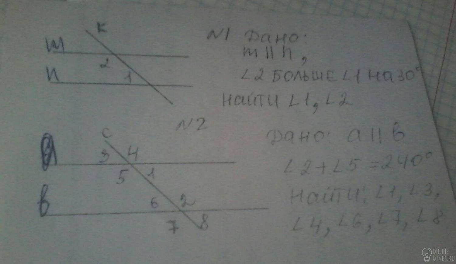 1 не знаю. 2. 2+5=240, т.е. угол 2=5=120, т.к. накрест лежащие, 5+1=180, угол 1= 180-120=60. 4+1=180, угол4=180-60=120, угол 3=60(180-120).