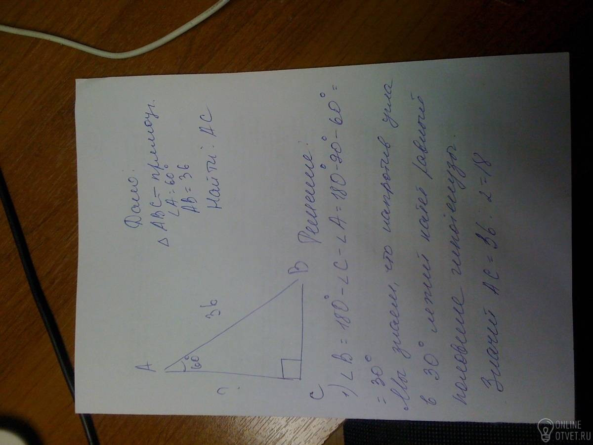В треугольнике ABC угол C равен 90, угол A равен 60, AB=36. Найти AC