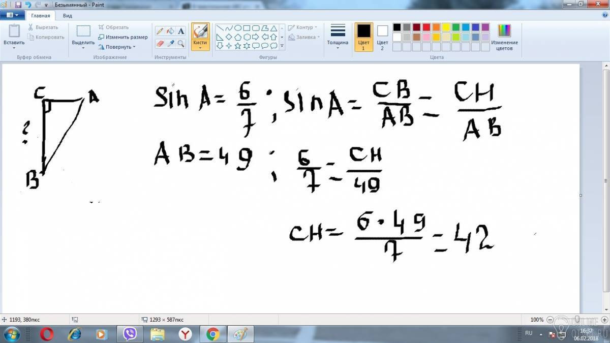 В треугольнике ABC угол C = 90градусов, CH высота, cis a = 6/7, AB = 49.Найти AH. Помогите пожалуйста