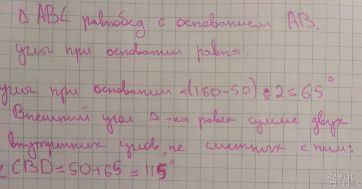 В треугольнике АВС (АС=ВС) угол С равен 50° найдите внешний угол СВD