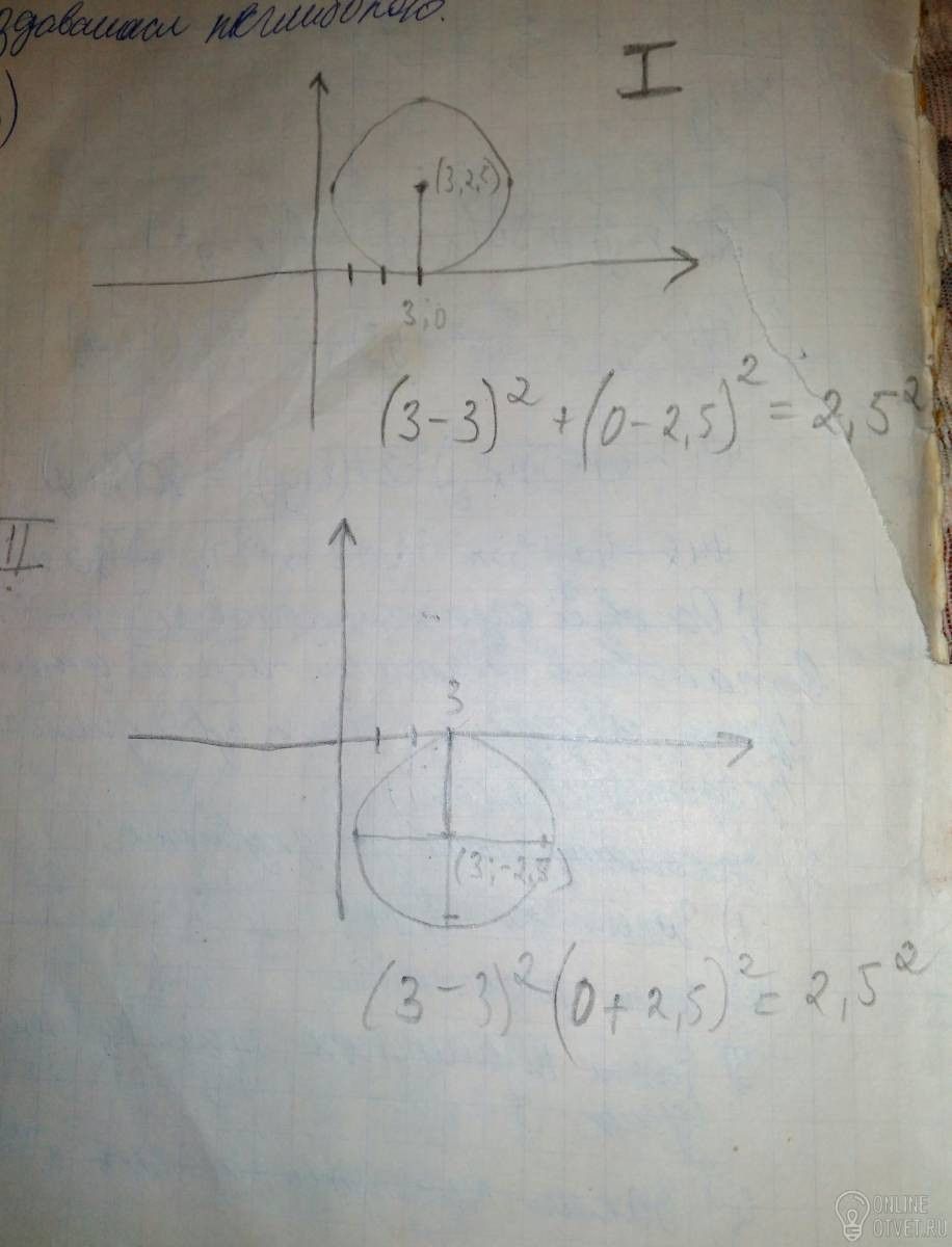 Составьте уравнение окружности, котороя касается оси x в точке B(3;0) и имеет радиус равный 2,5
