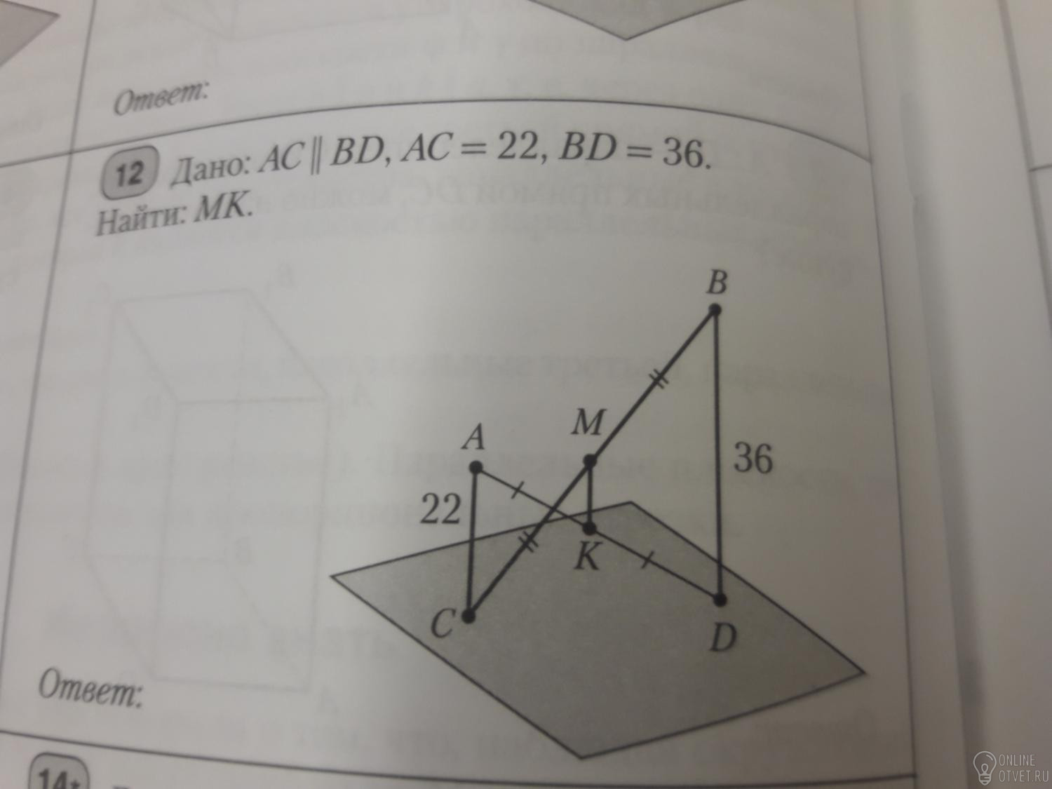 МК = АС/k₂ = 22/(22/7) = 7