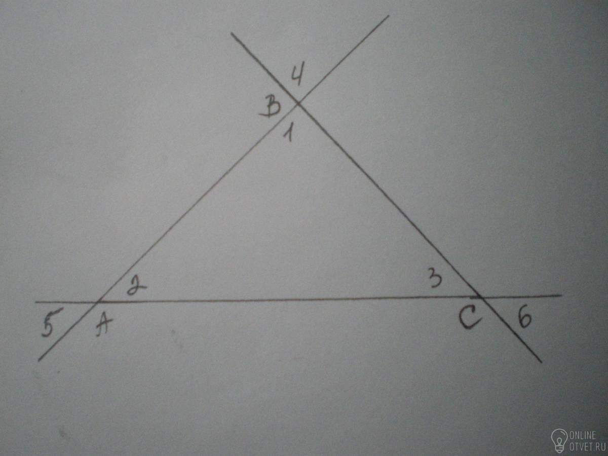 Поэтому: ∠1=∠А+∠С, ∠2=∠С+∠В, ∠3=∠В+∠А.
