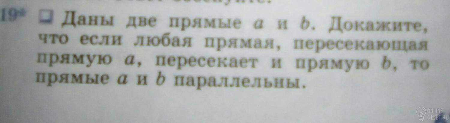 Если a и b парал. То любая прямая которая пересекает пройдет через обе т.к. она может идти бесконечно долго также как a и b.