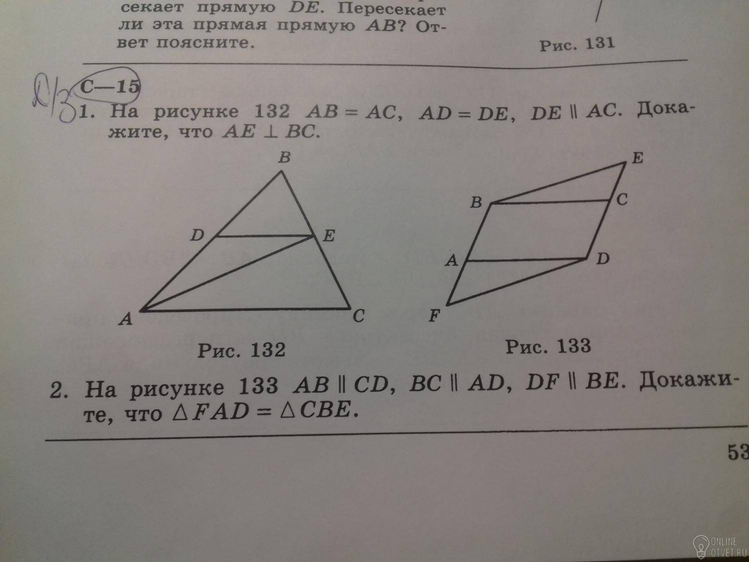 То есть AE перпендикулярно BC.