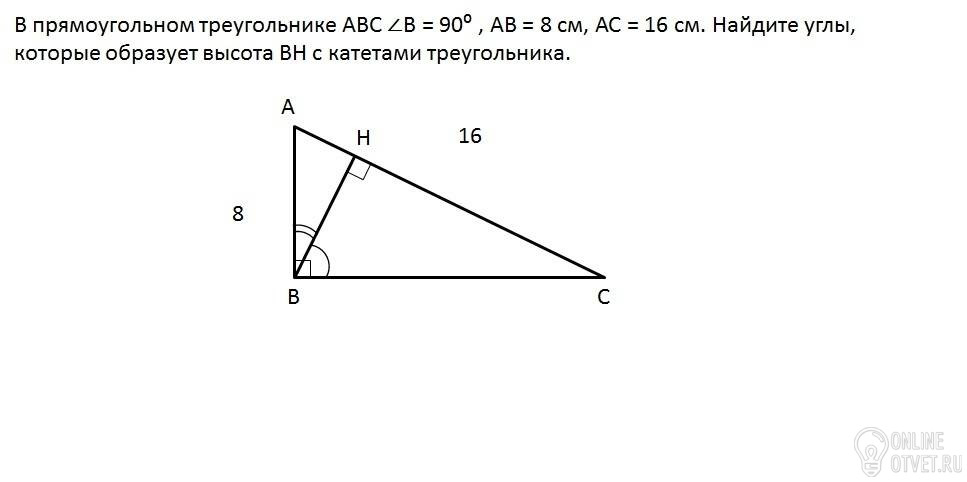 которые образует высота ВН с катетами треугольника. Начертить только чертеж, решения не надо, пожалуйста помогите!!!