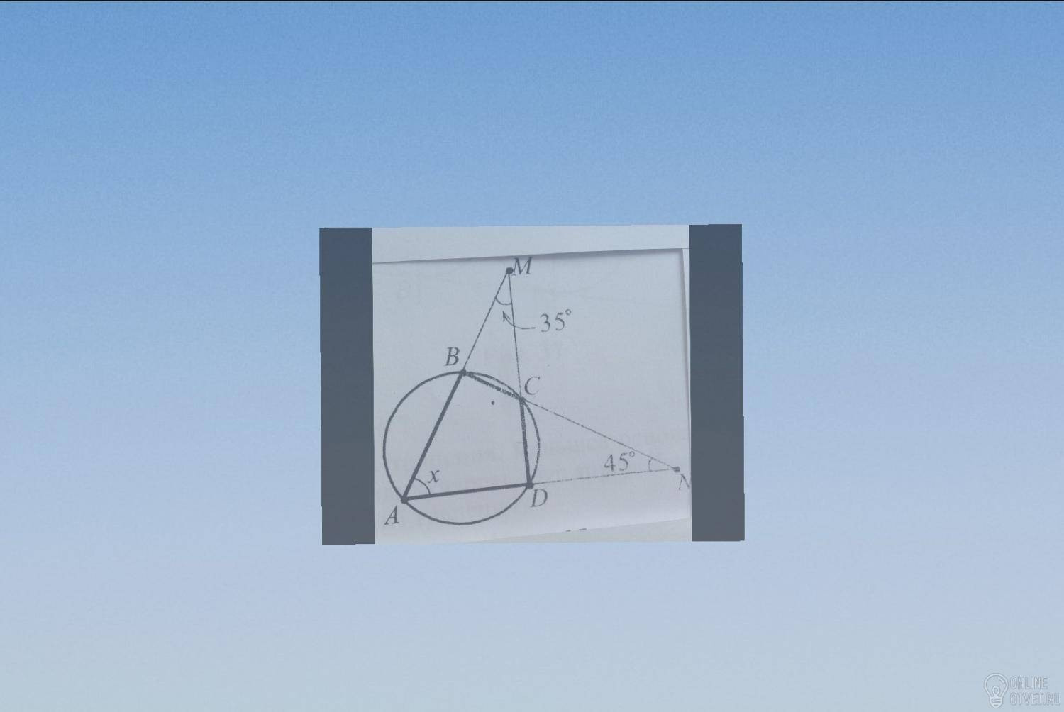 3) ∠MBC=180-x-35 ; ∠CDN=180-x-45. Т.к. ∠ABC+∠ADC=180 => ∠MBC+∠ADN=180 => 180-x-35+180-x-45=180 => -2x=-100 x=50.