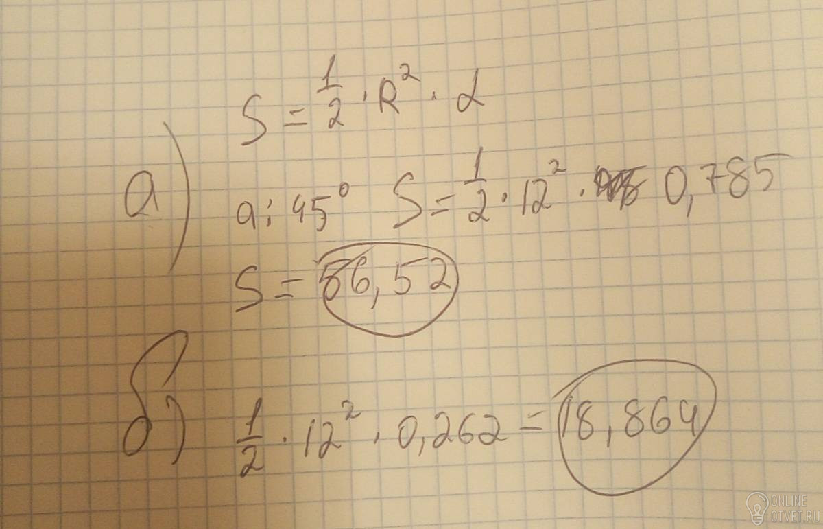 Найдите площадь кругового сектора радиуса 12 см, центральный угол которого равен: