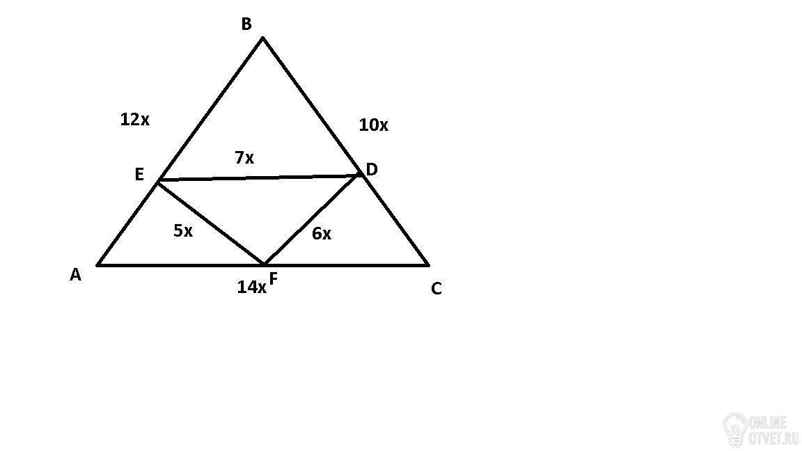 Следовательно, BC = 10x, AB = 12x, AC = 14x