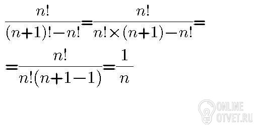 Сократить дробь: n!/(n+1)!-n! А. 1/n; Б.1/3n; В.2n; Помогите пожалуйста!!!!!