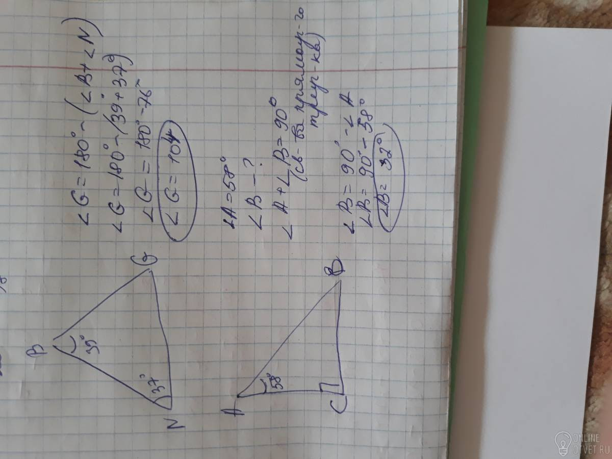 1. Дан треугольник NBG. ∠N=37°, ∠B=39°. Определи величину ∠G.