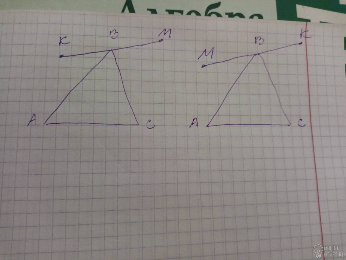 Рівносторонній трикутник ABC та пряма KM, що проходить через точку B, лежать в одній площині. Визначте градусну міру кута KBA, якщо кут CBM=85.