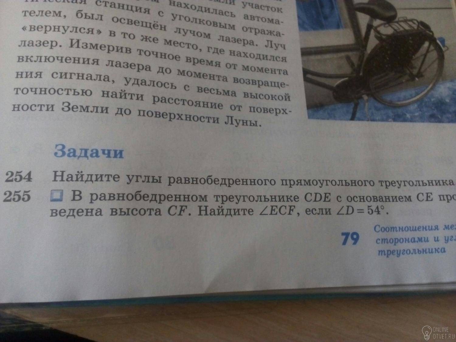 Равнобедр. Значит что у него два угла равны. Прямоуг. Значит что 1 угол=90°