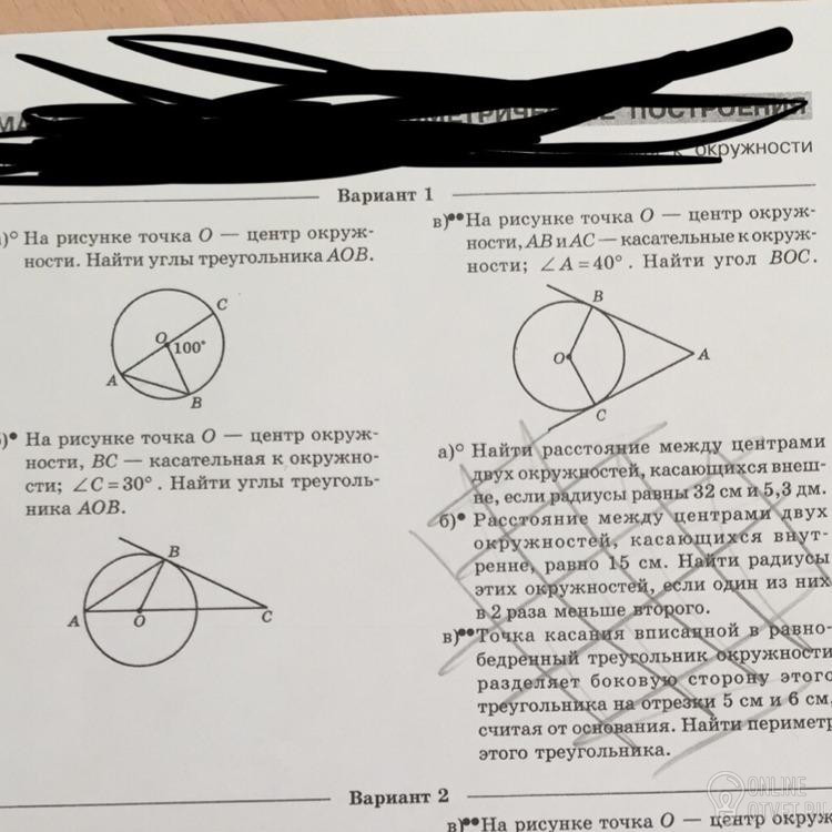 являются радиусами окружности О. Углы при основании равнобедренного треугольника равны угол А= угол В=(180-80)/2=50