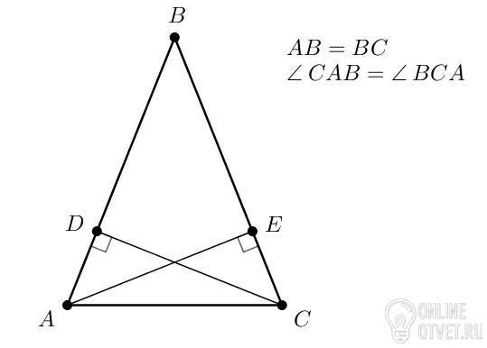 Докажите, что в равнобедренном треугольнике две высоты, проведённые из вершин основания, равны