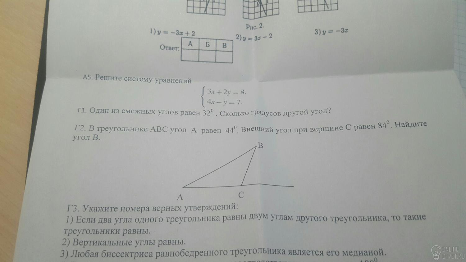 1)Мы знаем,что сумма смежных углов равна 180*,следовательно, <С=180-84=96*