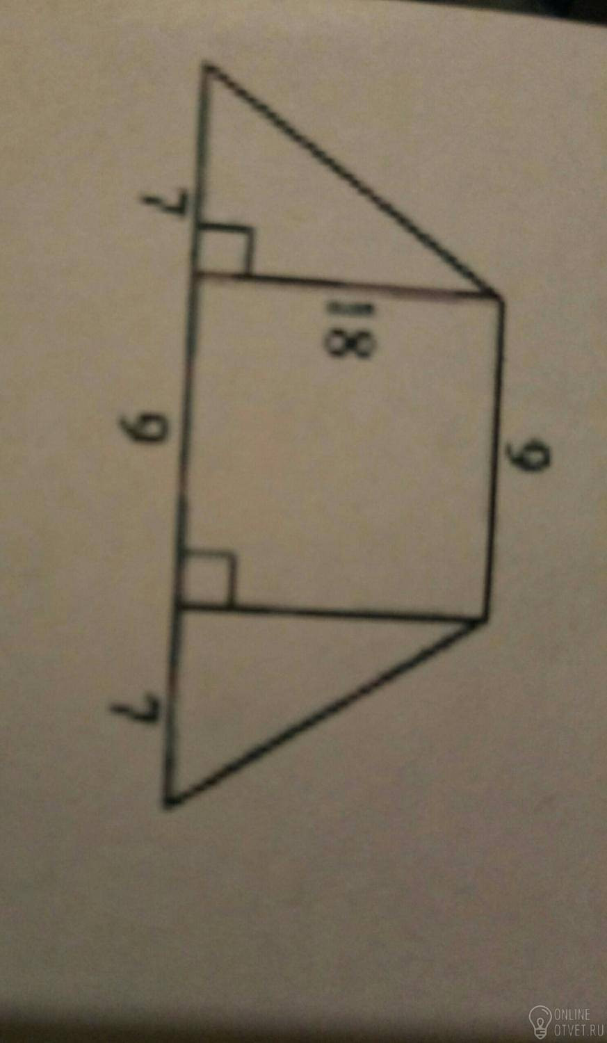 7*18(площади треугольников, так как треугольники равные и прямоугольные и если их совместить друг с другом, то получится прямоугольник)+9*18(площадь прямоугольника)=126+162=288