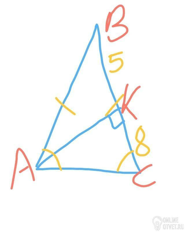АВ=АС=13. В прямоугольном треугольнике АВК по Пифагору