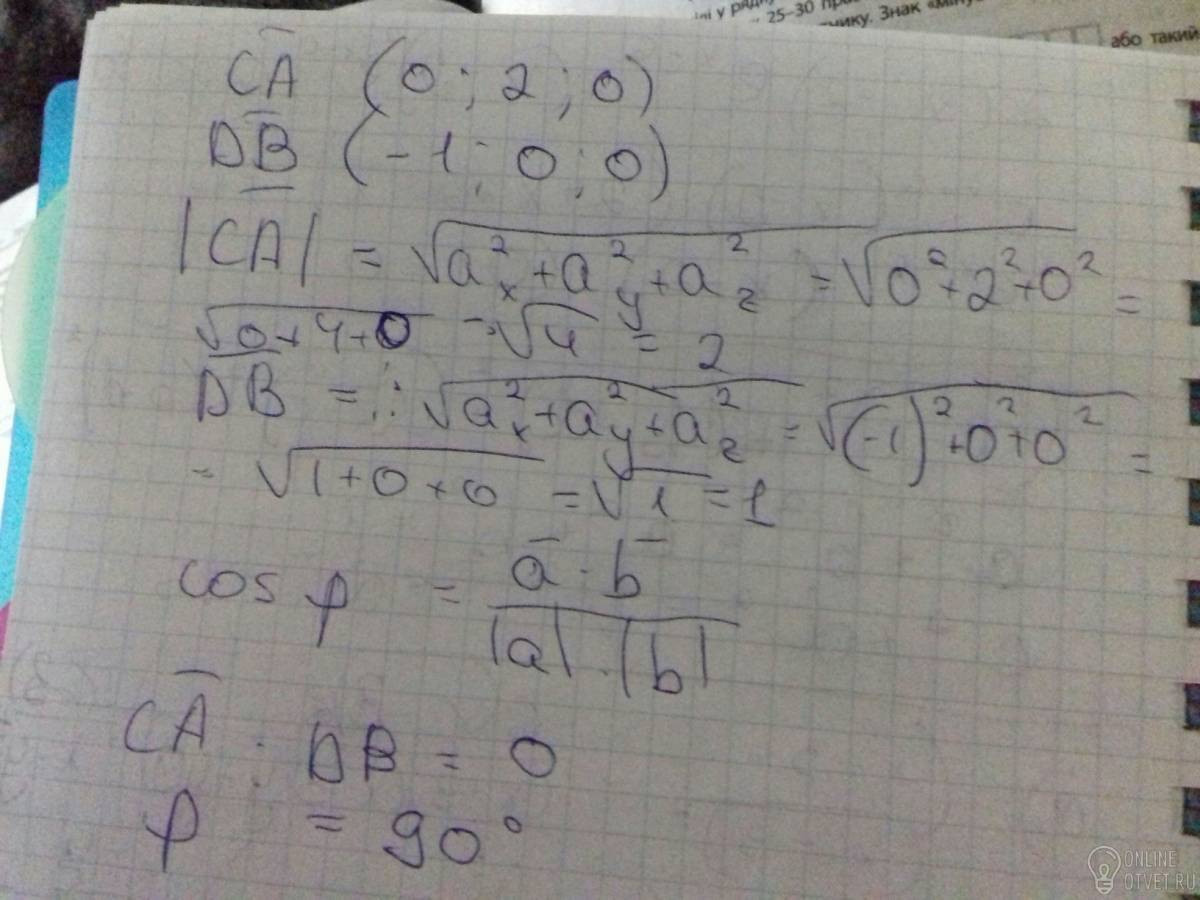 Найдите угол между векторами СА і DB, если А(2;-1; √2), B(1;-2;0),